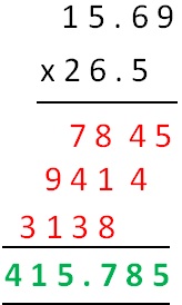 - First, Ignore the decimal numbers and multiply the number as whole. Next, count the number of decimal places and place the decimal point in the product after count from the right.