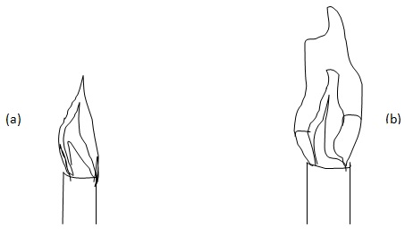 (d) (a) - non-luminous flame is produced when the air hole is open while the luminous flame (b) is produced when the air hole is closed.