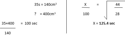 In 35 seconds, it was found that 140cm3 of nitrogen (N2) had diffused through a strip of porous porcelain. How long will it take 400cm3 of carbon (IV) oxide to diffuse through the same strip of porous porcelain.