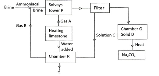 The diagram below shows the process of manufacturing sodium carbonate using ammonia soda process. Study it and answer the questions that follow.