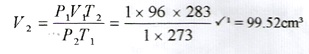 - At the end of the experiment 96.0cm3 of gas X were collected at 10°C and 1 atmosphere pressure. (Mg = 24, M.G.V = 22.4, T =0°C at stp, P = 1 atmosphere at sip).