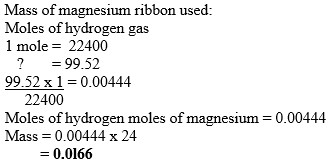 (ii) Calculate the mass of magnesium ribbon used Mg = 24