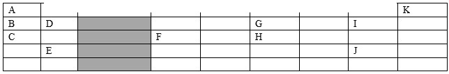 The grid below represents part of the periodic table. Study it and answer the questions that follow. The letters do not represent the actual symbols of the elements.
