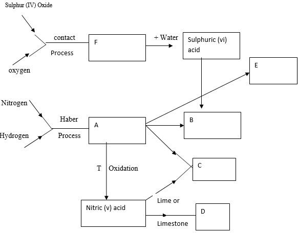 The flow chart below outlines the manufacture of several important fertilizer. Use it to answer the questions that follow: