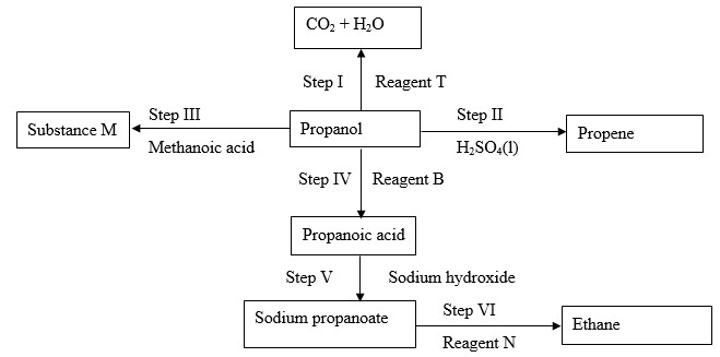 The flow diagram below shows some reactions starting with propanol. Study it and use it to answer the questions that follow.