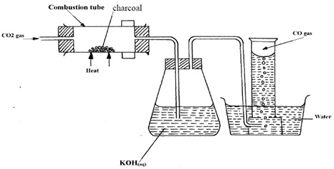 The diagram below shows the set-up used to test a property of carbon in the laboratory. Study it and use it to answer the questions that follow.