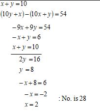 A two-digit number is such that the sum of the ones digit and the tens digit is 10. If the digits are reversed, the number formed exceeds the original number by 54. Find the number