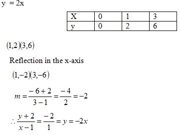 The line y=2x is reflected in the x-axis. Find the equation of the image of the line